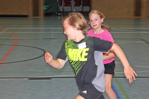 Mit zwei Fangspielen in der Erwärmungsphase, die besonders die Verbesserung des Passens und Fangens bewirken soll, wurde der dritte Tag des Handball-Camps eröffnet.