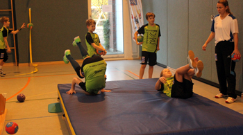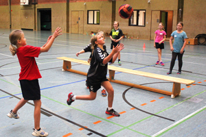 Erst das Völkerballspiel und dann ging es weiter mit Stationsübungen