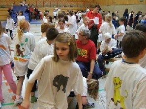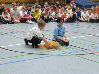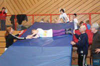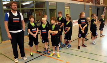 Mit Aktionen pur aber begann der zweite Tag, wobei bereits nur in den einzelnen Alters- bzw. leistungsgerechten Gruppen trainiert wurde. In der Erwärmungsphase waren fast ausschließlich Koordinierungsübungen enthalten. Nach diesem in Stationsübungen zusammengefassten Training erfolgte dann ein Wurfwettkampf. Nach dem Mittagessen –viele konnten es gar nicht abwarten und standen noch während der Pause wieder in der Halle- fand bewusst keine Erwärmung mehr statt.