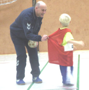Am Samstag und Sonntag konnten die Teilnehmer dann je eine Demonstrations-Trainingseinheit mit einer E- bzw. D-Jugend-Mannschaft des TuS Augustfehn absolvieren. Am Ende des Lehrgangs erhielten alle Trainer ein Zertifikat, eine CD-Rom mit allen Unterlagen des Kinderhandball-Grundkurses sowie ein schickes T-Shirt vom Handball-Verband Niedersachsen (HVN) ausgehändigt.