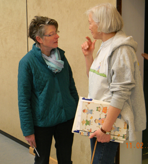 Bild links mit Margret Wiegmann und rechts mirt Gunda von Danckelman mit dem aufmarksam zuschauhenden Lehrer