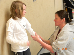 Mit Nationaltrainerin Maike Balthazar namhafter Besuch in der Metjendorfer Sporthalle