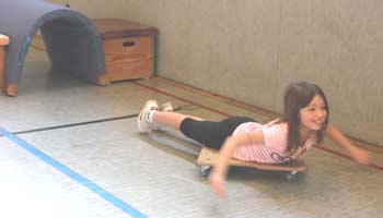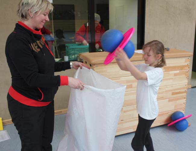 Ein Erfolg sollte sich dabei auch durch die Vielzahl der hier angebotenen Spielangebote wie: Rollen von der Schiefen Ebene, Rollbrettfahren, jonglieren mit Tüchern oder kleinen Bällen, Rollbrettstaffel, Rodeo auf der großen Weichbodenmatte, einstellen.