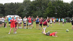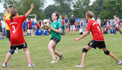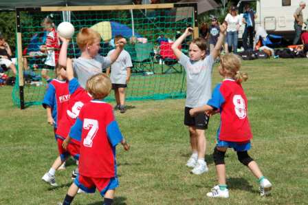 Nach 16 Jahren in Neuenkruge, findet das Jugendhandballturnier des SVE Wiefelstede in diesem Jahr erstmals auf der Sportanlage in Wiefelstede statt. Die Vorbereitungen für das am 18. August stattfindende Turnier laufen bereits auf Hochtouren. Kurz vor Ablauf der Meldefrist haben sich bislang 69 Mannschaften aus 12 Vereinen angemeldet. Das Organisationsteam ist sich sicher, dass mit diesem Teilnehmerfeld und den örtlichen Gegebenheiten der Wiefelsteder Sportanlage, eine ebenso gute Atmosphäre wie in Neuenkruge geschaffen werden kann. Auf 8 Spielfeldern und 2 Minifeldern wird um die von zahlreichen Unternehmen gestifteten Pokale und Sachpreise gekämpft. Mit der Unterstützung zahlreicher Eltern und Spielern bzw. Spielerinnen unserer Seniorenmannschaften, wird auch für das leibliche Wohl der Teilnehmer und Besucher gesorgt sein. TurniereinladungSV Eintracht Wiefelstede veranstaltet Sonntag, 18. August 2o13 ein Jugend-Kleinfeld-Handball-Turnier auf Rasenplätzen nach 16 erfolgreichen Jahren in Neuenkruge, veranstalten wir unser traditionelles Jugend-Kleinfeld-Handballturnier auf Rasen erstmals auf den Sportplätzen in Wiefelstede. Das bewährte Organisationsteam würde sich freuen, euch auch in diesem Jahr begrüßen zu dürfen. Gespielt wird in den Jahrgängen der Saison 2013/2014, nach den Regeln des DHB bzw. des HVN. Das Spielen in Stollenschuhen ist untersagt. Sollten in einer Altersklasse nicht mehr als 4 Mannschaften teilnehmen, wird der Turniersieg in einer Hin- und Rückrunde ausgetragen. Bei der Schiedsrichterversorgung sind wir auf eure Hilfe angewiesen. Vereine mit bis zu 3 gemeldeten Mannschaften werden gebeten einen Schiedsrichter und Vereine mit mehr als 3 Mannschaften zwei Schiedsrichter zu stellen. Die gemeldeten Schiedsrichter erhalten am Turniertag freie Verpflegung. In diesem Jahr können wir leider keine Übernachtungsmöglichkeiten auf den Sportplätzen anbieten.